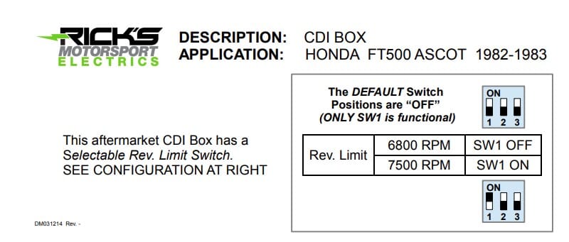 Hot Shot Honda CDI Box: This Hot Shot CDI Box is enhanced with a Redline Selection. Rick's upgraded piece is a replacement for OE # 30401-MC8-003. *CDI Boxes are not covered under the One Year Warranty.