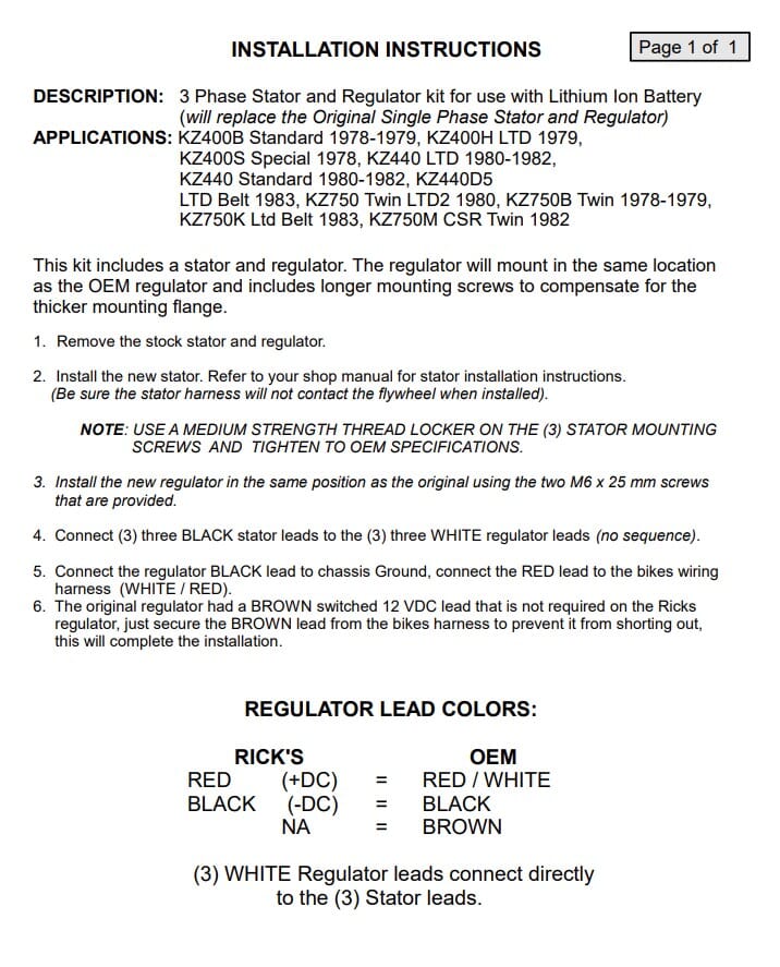 • Hot Shot Series Kawasaki Charging Kit Lithium Compatible 14_99_200H for a 1982  Kawasaki Street Bike  KZ440  LTD