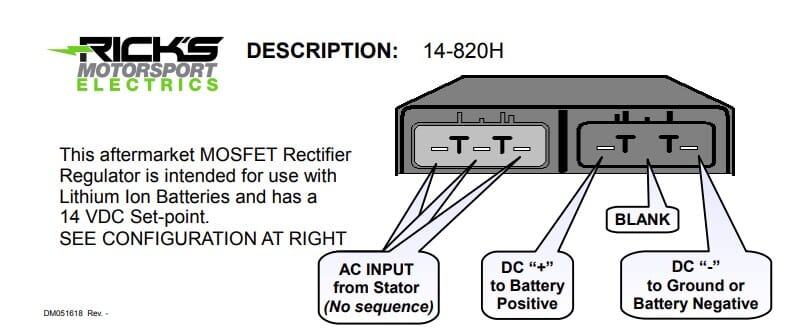 ***Rick's Motorsport Electrics One Year Product Warranty is for the Rec-Reg only. Rick's warranty does not cover batteries of any type.