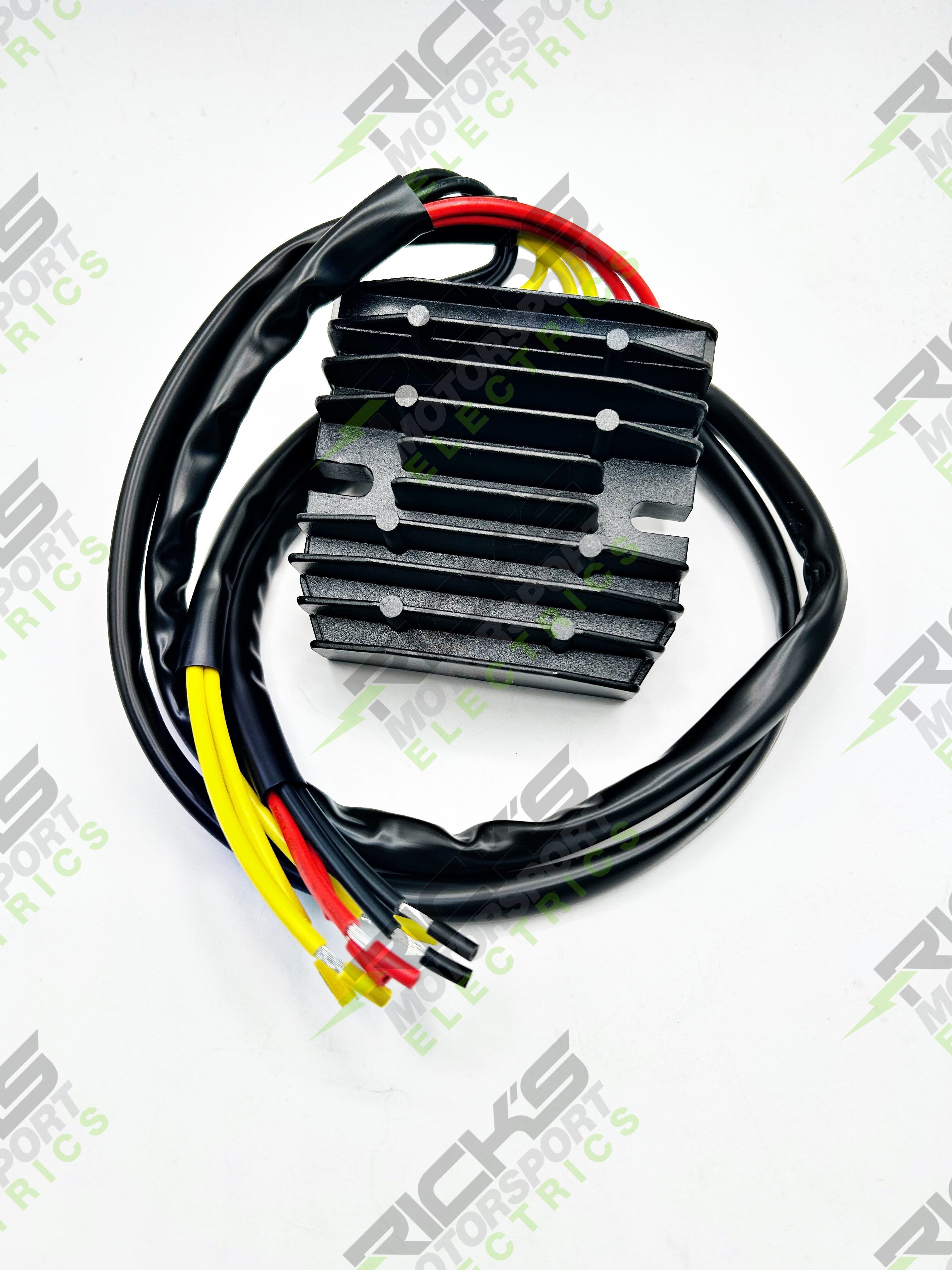 Hot Shot Universal Lithium Ion friendly 50amp Rectifier Regulator with 7 Wires: 3 stator wires, 2 battery (-) & 2 battery (+) This part comes with wire leads only - it does NOT come with connectors.