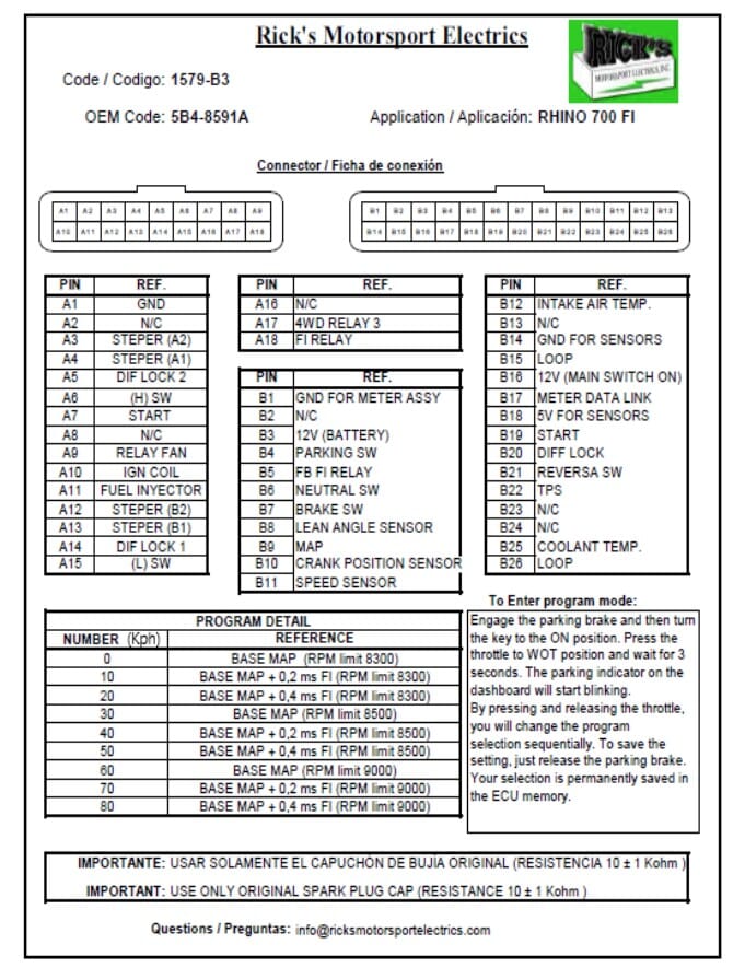 Hot Shot Yamaha ECU Box: This Rick's Hot Shot CDI Box allows the user to add & subtract fuel without the use of computer software. No rev limit in reverse; average increase of +5 Hp and +10 MPH. *The spark plug must be upgraded to a CR8E NKG plug when using this upgraded box. It is a replacement for OE# 5B4-8591A-01-00 & 5B4-8591A-00-00. ***Please note that this ECU does not support Diagnostic mode; it is designed to improve the UTV's engine performance only. *CDI Boxes are not covered under the One Year Warranty.