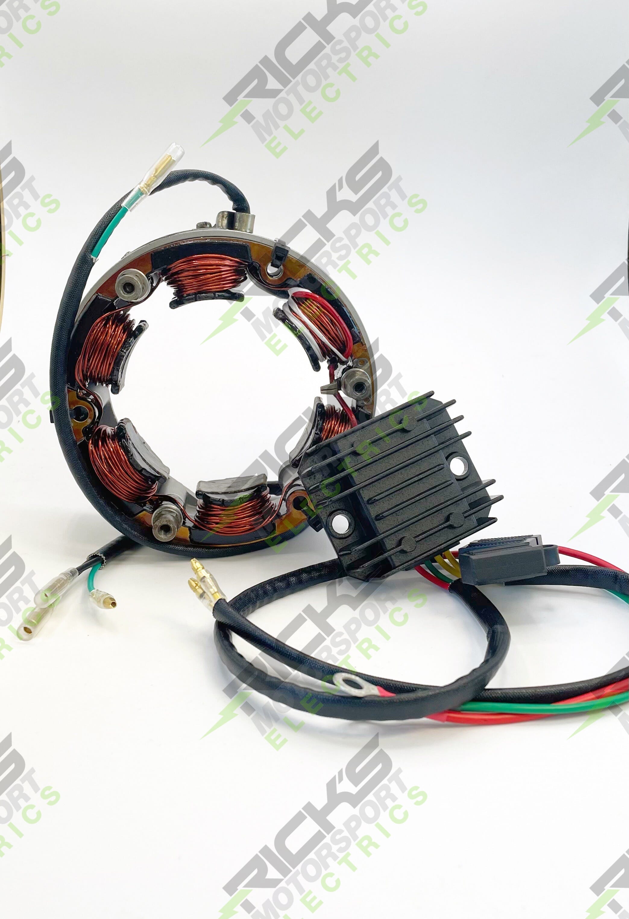 Honda Charging Kit Lithium Compatible: This kit is a Rick's Motorsport Electrics original design that includes both a stator and a lithium compatible rectifier regulator.  *Customers are REQUIRED to send the OE stator assembly including the ALUMINUM HOUSING (see additional photos) so the parts can be installed properly; the installation must be done by one of our production staff for proper fit.