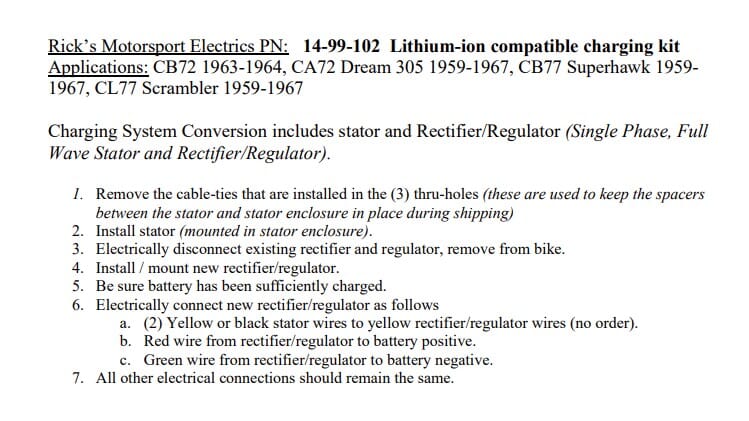 • New Honda Charging Kit Lithium Compatible 14_99_102 for a 1967  Honda Street Bike  CB77  Superhawk