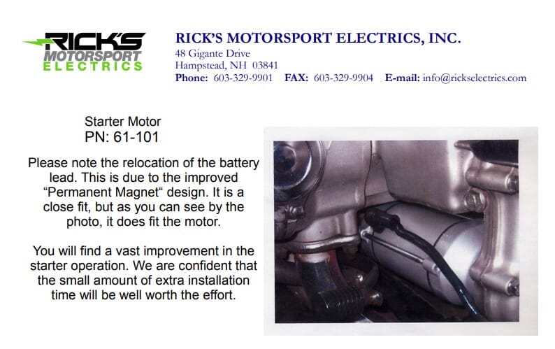 New Honda Starter Motor: This is a 4-brush, permanent magnet starter motor; the battery lead has been relocated. This upgraded version will provide almost double the power.