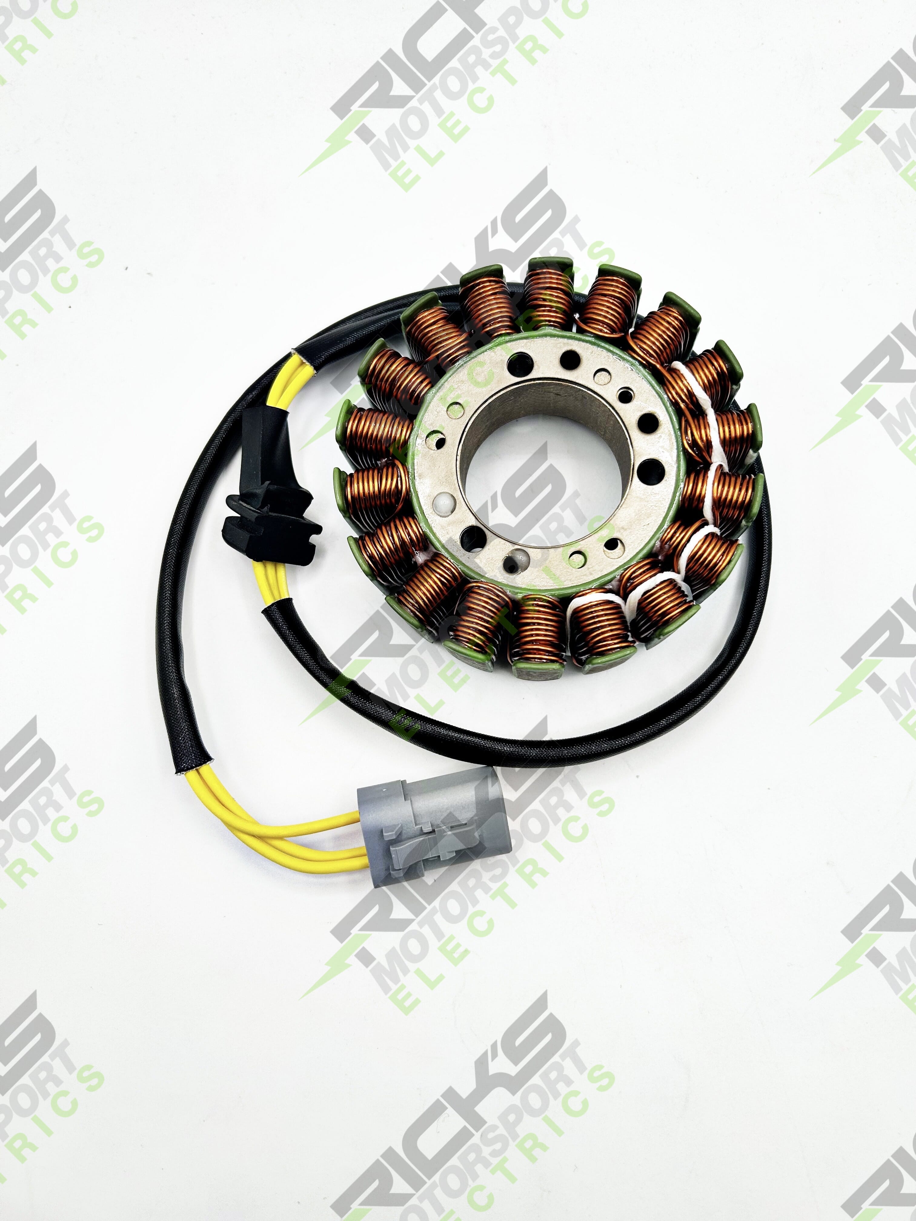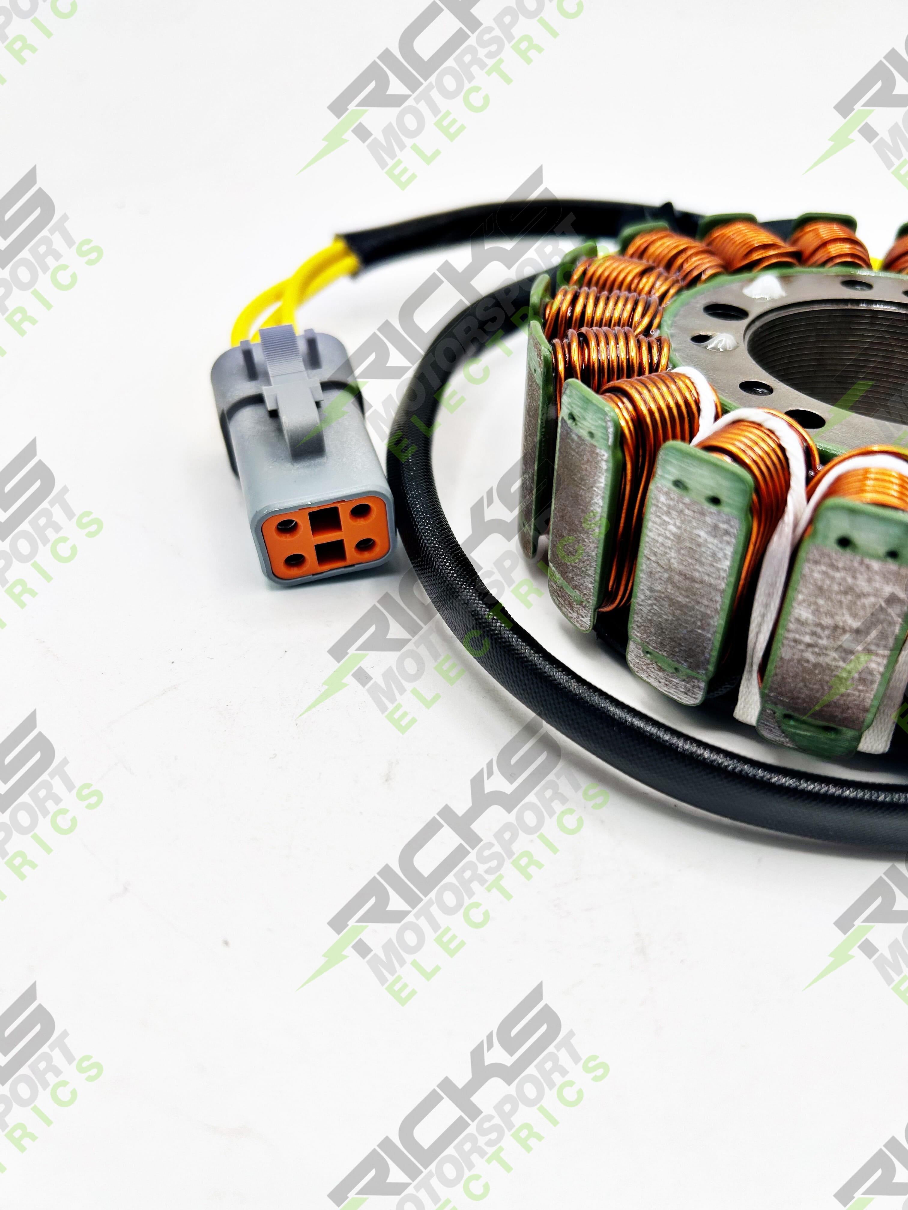 New Hot Shot Series Buell Stator; Rick's aftermarket Hot Shot stator will replace OE#: TM21120990 and TMY04421AMA. This is wound with high temp wire to extend the life of the stator. It will fit 2008 1125CR & 1125R