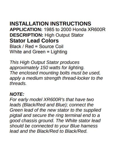 New Hot Shot Style Honda Stator for Honda 1985-2000 XR600R; this stator will replace OE# 31120-MN1-681, 31120-MN1-671, and 31120-MK2-005: Rick's design will look different than the OE stator. It is designed as a direct plug-in and should be used as such; installation instructions will be provided for the stator lead colors. *For international sales, be sure to match OEM part numbers before ordering.*