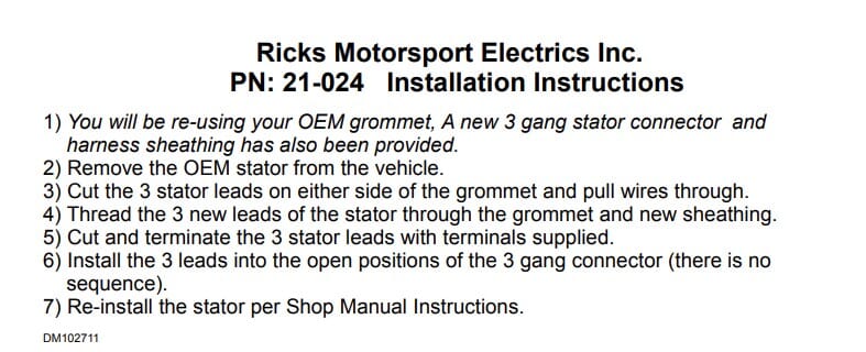 New OEM Style Aprilia Stator: *The grommet is not included; installation instructions for the OE grommet will be provided.