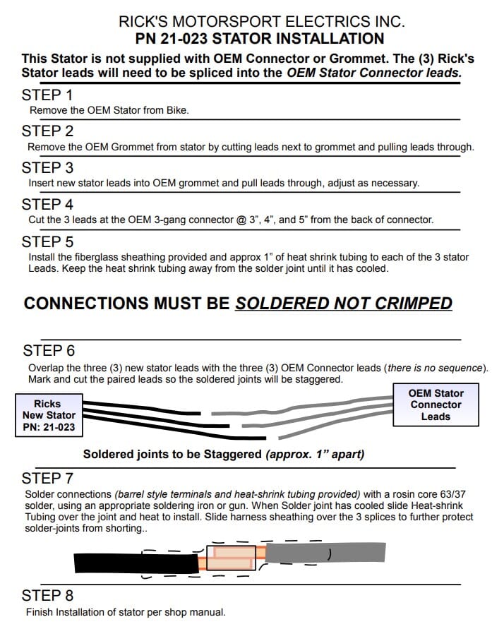 Rick's Motorsport Electrics offers an OEM Style replacement for your BMW Street Bike Stator OE# 12117687776, 12318524422, 12317690427 and 12112343132. This stator does not include the grommet or connector. Installation instructions for the OE parts will be provided; the lead wires may need to be cut to length.