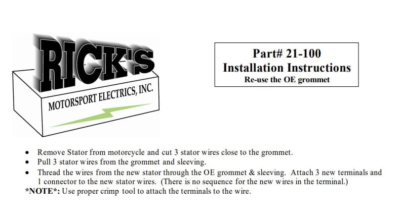 New OEM Style Honda Stator: *The grommet is not included; installation instructions for the OE grommet will be provided.