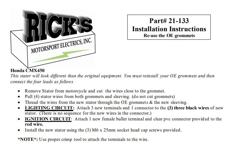 New OEM Style Honda Stator: *The grommet is not included; installation instructions for the OE grommet will be provided.