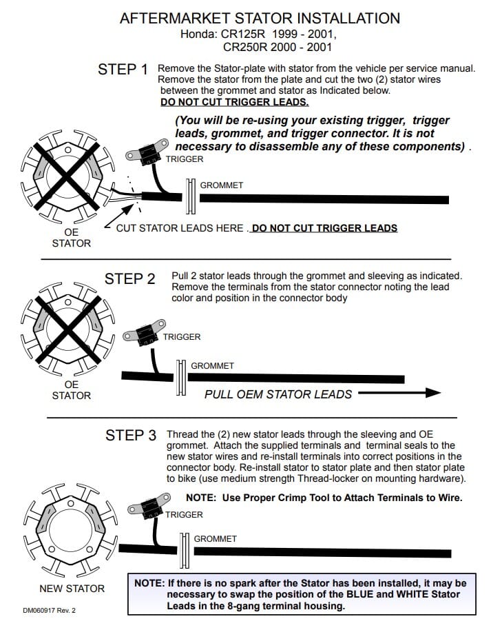 New OEM Style Honda Stator: This aftermarket stator is for 1999-2001 CR125R & 2000-2001 CR250R with OEM #s 31100-KZ4-A91, 31100-KZ4-A90; 31100-KZ3-J21, 31100-K23-A90; 31100-KZ3-J31, 31100-KZ3-J30; 31100-KZ4-J31,31100-KZ4-J30 & 31100-KZ3-J11.