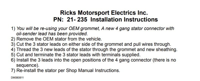 New OEM Style Kawasaki Stator: *The grommet is not included; the connector, terminals & sleeving will be packaged separately. Installation instructions will be provided.