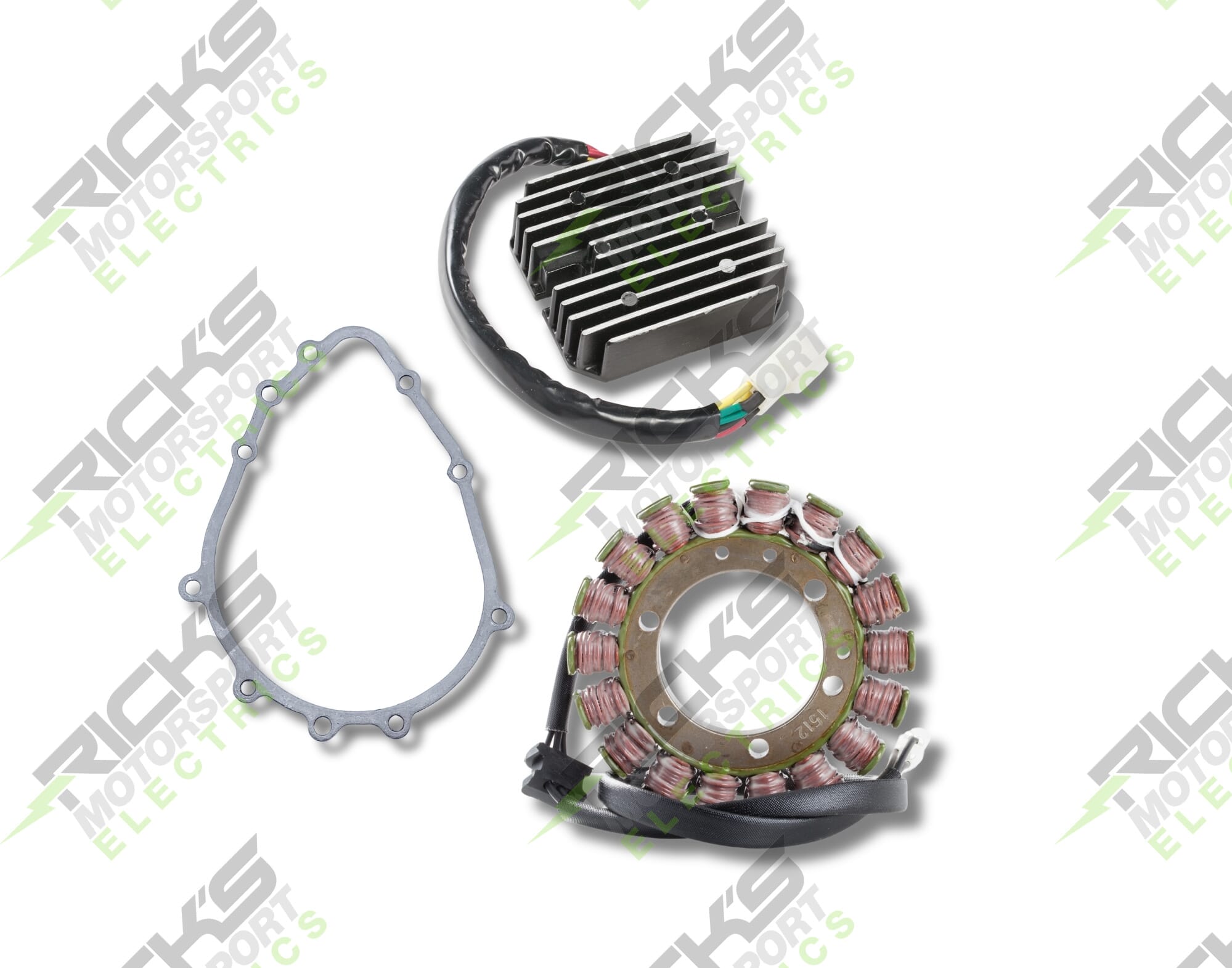 New OEM Style Rick's Easy Kit; This complete charging kit is designed to make the repair job as easy as possible. Kit includes a new stator, new rec/reg & new stator gasket. Our aftermarket parts will replace OE #: 21003-1330 (stator); 21066-1099 (rec/reg); 11060-1851,11060-1673 (gasket).