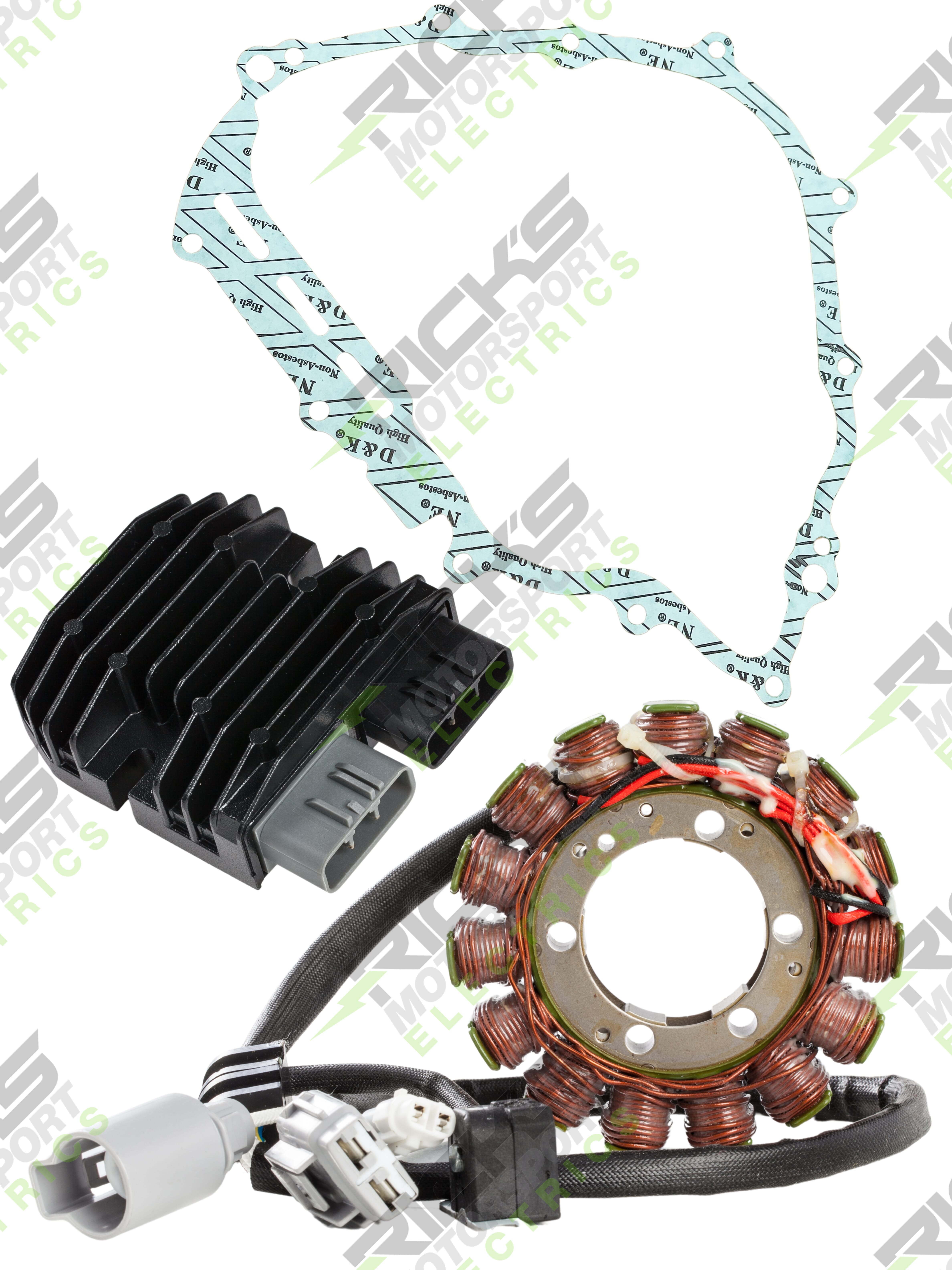 New OEM Style Rick's Easy Kit; This complete charging kit is designed to make the repair job as easy as possible. Kit includes a new stator, new rec/reg & new stator gasket. Our aftermarket parts will replace OE# 5B4-81410-00-00(stator), 3B4-15451-00-00(gasket), 1D7-81960-01-00 & 1D7-81960-00-00(rec/reg).
