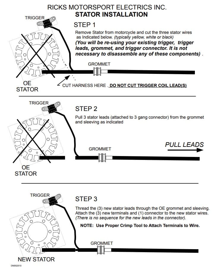 New OEM Style Suzuki Stator: Rick's offers an aftermarket stator for 90-93 VX800 motorcycles with OEM # 32101-45C30. Our design is 2mm thinner than the OE piece, but will bolt in without any modification. *The grommet & trigger coil are not included. Installation instructions for the OE parts will be provided.