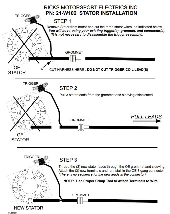 New OEM Style Yamaha PWC Jet Ski Stator: *The grommet & trigger coil are not included; the trigger coils are sold separately (Rick's part #21-503). Installation instructions for the OE grommet, connector & trigger will be provided.