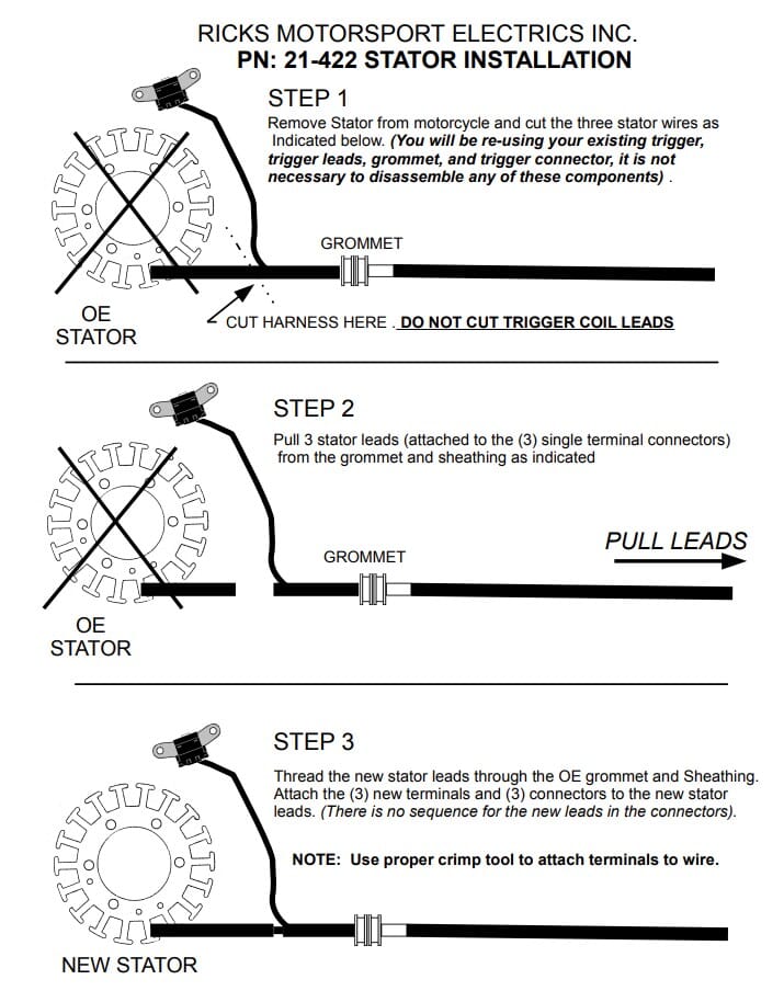 New OEM Style Yamaha Stator: This aftermarket stator will replace OEM #s 5KS-81410-02-00, 5KS-81410-01-00, & 5KS-81410-00-00. *The grommet & trigger coil are not included; the trigger coil is sold separately (Rick's part# 21-502). Installation instructions for the OE parts will be provided.