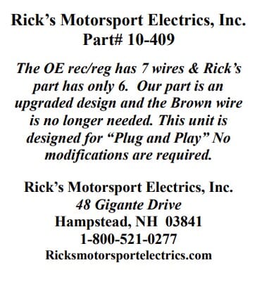 OEM Style Yamaha Rectifier-Regulator: Rick's upgraded design will have one less wire than the OE piece. This is an aftermarket 35amp replacement for OE# 4X7-81960-A0-00.