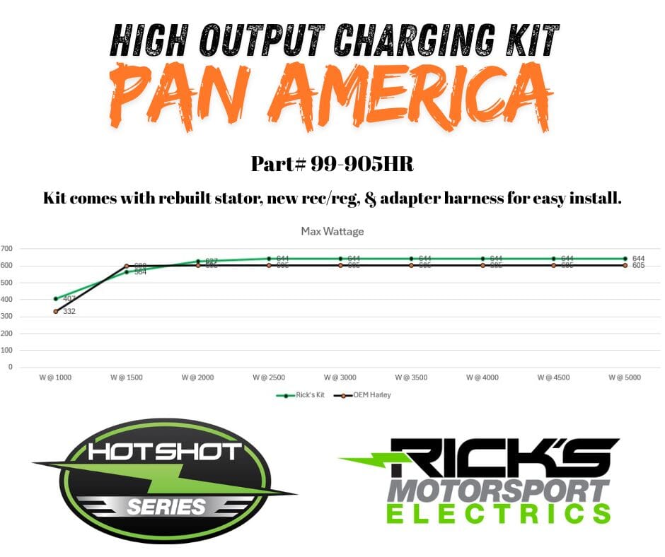 Rebuilt Hot Shot Harley Davidson Charging Kit; *An OE stator core is required in advance. This kit includes BOTH a high output stator rebuild service & rectifier regulator that are designed to work together. This kit will replace OE# 29900078 for the 2021-2023 Pan America.