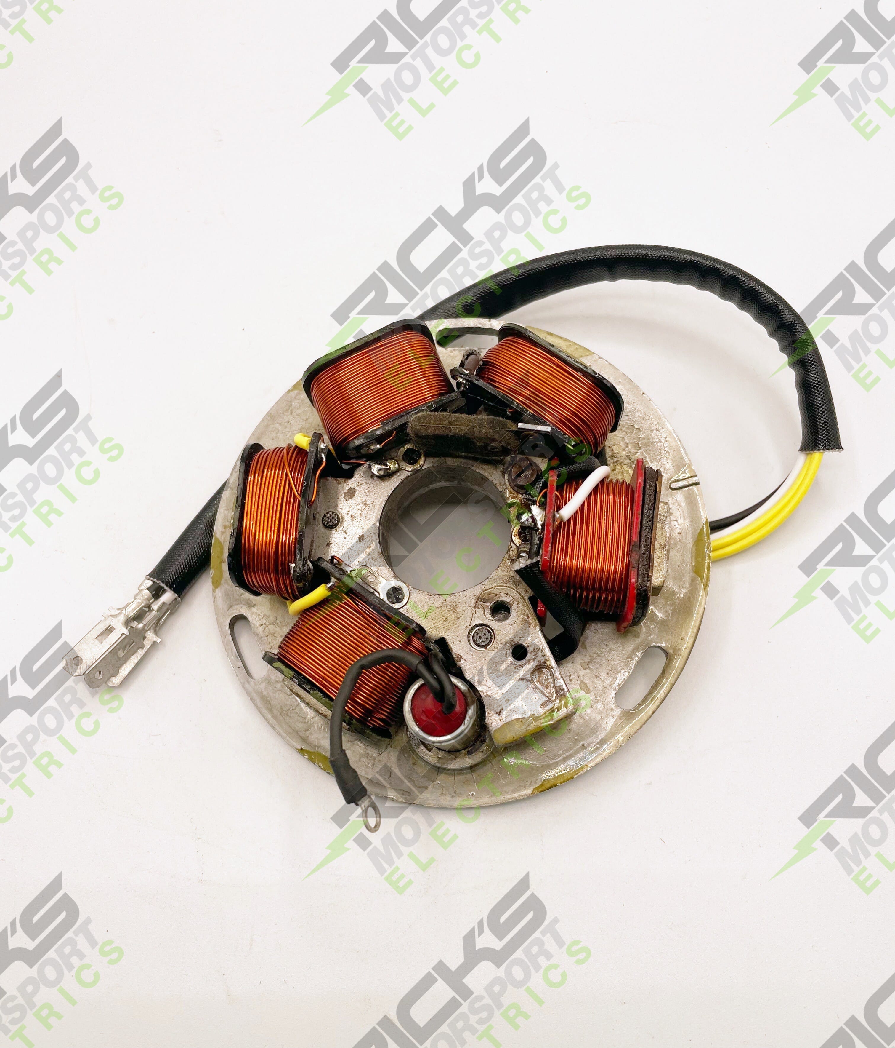 Rebuilt OEM Style Vespa Stator: This rebuild service is for the 1979 Vespa P125X scooter. *We cannot replace or repair the points & condenser. A core is required in advance;this includes the stator plate, grommet, all coils mounted on the plate (where applicable) as well as wiring and connectors/terminals coming off the coils or plate assembly for all components even if you only require an individual coil rebuild. Please send your piece into us with a copy of the completed part rebuild form located on our website. Once the part gets here, we will test it then contact you for payment before beginning any work. Current turnaround time for a rebuild is 2-3 weeks from receiving payment. No personal checks accepted. Due to increased pricing and material shortages, all prices are subject to change. If there is any unforeseen work that we need to do to "clean up" the core; i.e: additional dismantling due to corrosion,frozen bolts,etc. there will be an additional labor charge. The labor charge will be $65/hour with a 1 hour minimum. We have done our best to give an accurate estimate for the initial rebuild charge, but there may be additional fees that can only be assessed once the rebuild is complete.