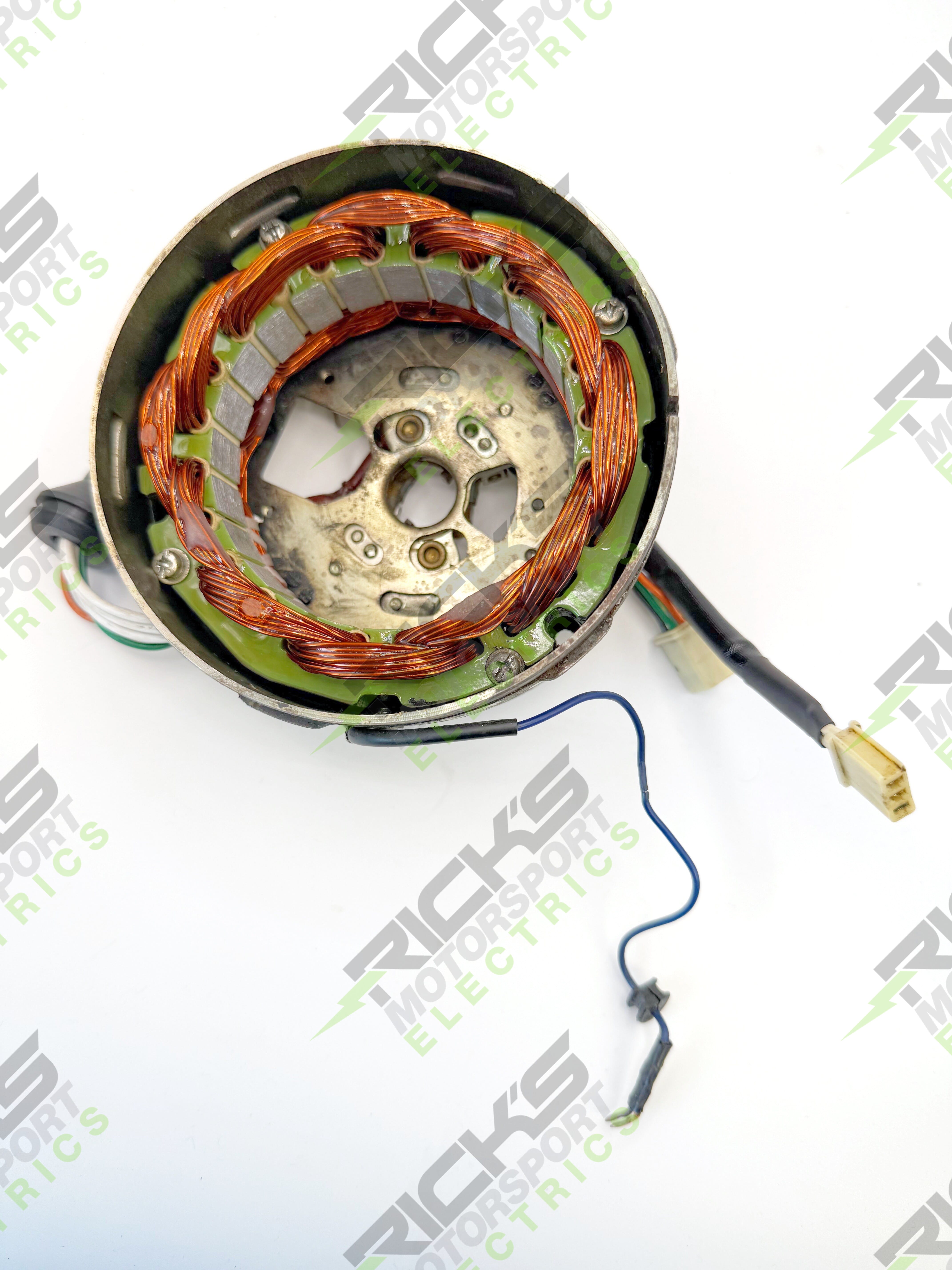 Rebuilt OEM Style Yamaha Stator: A core is required in advance;this includes the stator plate, grommet, all coils mounted on the plate (where applicable) as well as wiring and connectors/terminals coming off the coils or plate assembly for all components even if you only require an individual coil rebuild. Please send your piece into us with a copy of the completed part rebuild form located on our website. Points & condensors are NOT included in the rebuild. We can install them if supplied by customer for an additional $50 charge. Once the part gets here, we will test it then contact you for payment before beginning any work. Current turnaround time for this rebuild is minimum 6 weeks from receiving payment. No personal checks accepted. Due to increased pricing and material shortages, all prices are subject to change. If there is any unforeseen work that we need to do to "clean up" the core; i.e: additional dismantling due to corrosion,frozen bolts,etc. there will be an additional labor charge. The labor charge will be $65/hour with a 1 hour minimum. We have done our best to give an accurate estimate for the initial rebuild charge, but there may be additional fees that can only be assessed once the rebuild is complete.