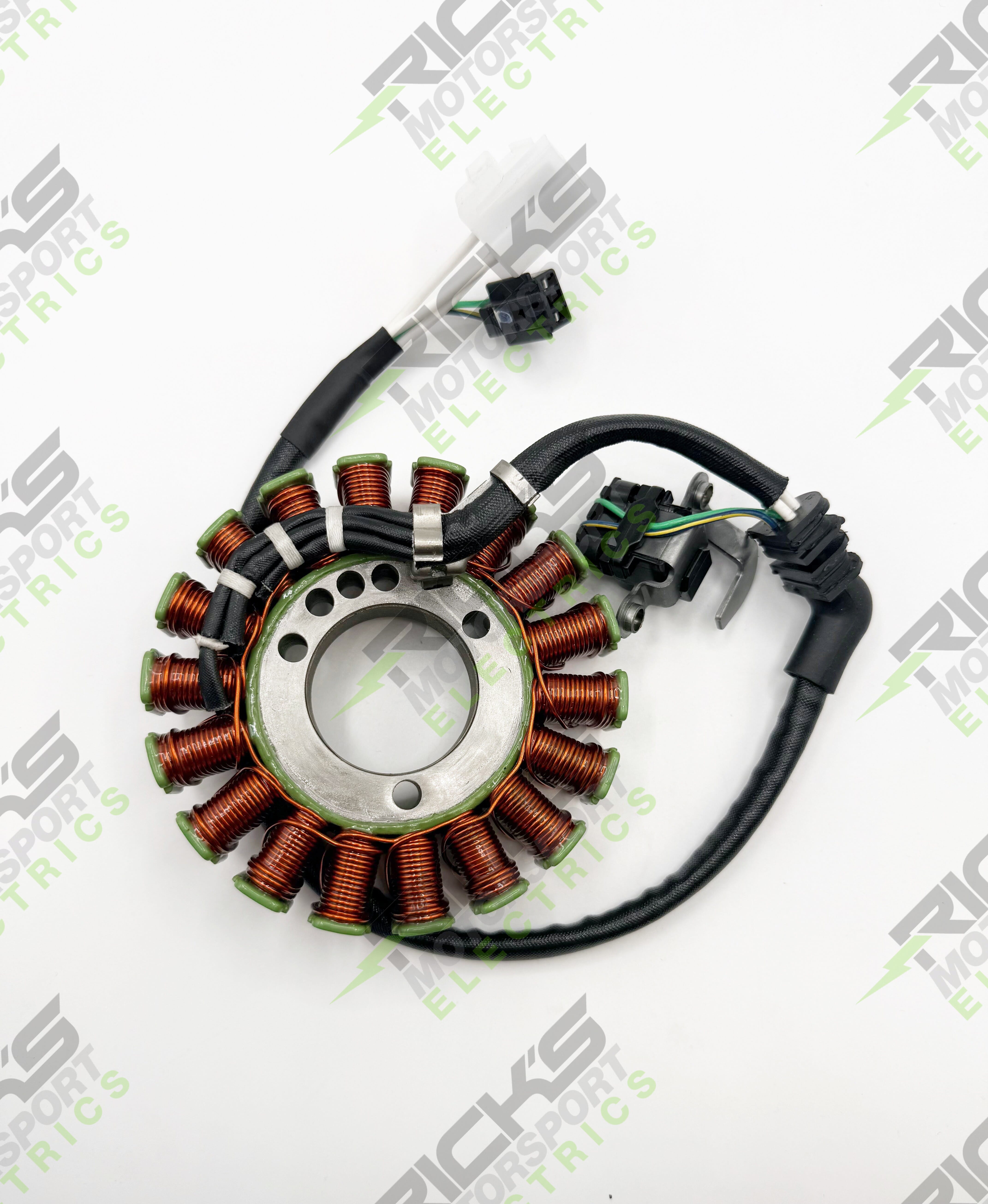 Rick's Motorsport Electrics offers a Stator Rebuild Service for Yamaha Stator OE# BS7-H1410-00-00. A core is required in advance; this includes the grommet, trigger, connector/s and wire lead coming off the stator. *The grommet is not replaced with the rebuild service; we will need to re-install the OE piece. Please complete rebuild request form located on our website and send it in to us with your stator. Once the part gets here, we will test it then contact you for payment before beginning any work. Current turnaround time for a rebuild is 2-3 weeks from receiving payment. No personal checks accepted. Due to increased pricing and material shortages, all prices are subject to change. If there is any unforeseen work that we need to do to "clean up" the core; i.e: additional dismantling due to corrosion,frozen bolts,etc. there will be an additional labor charge. The labor charge will be $65/hour with a 1 hour minimum. We have done our best to give an accurate estimate for the initial rebuild charge, but there may be additional fees that can only be assessed once the rebuild is complete.