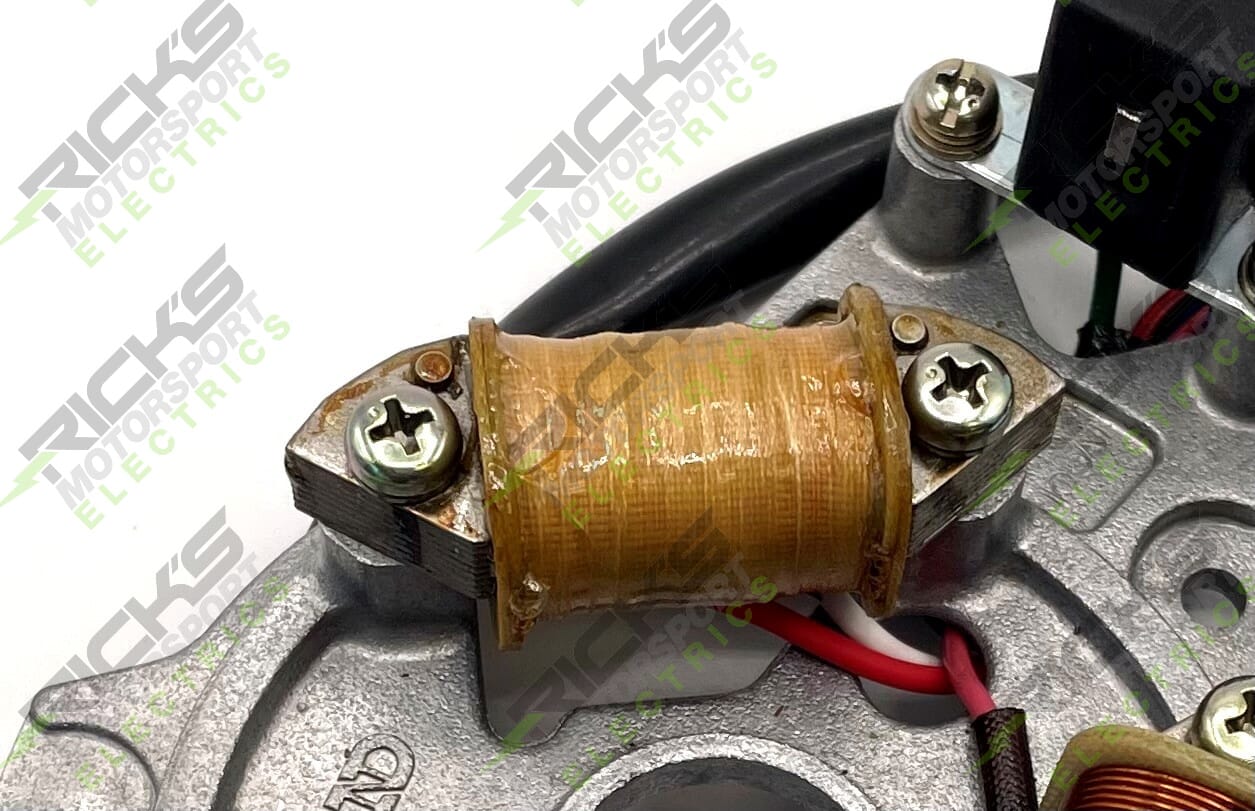 Rebuilt Suzuki Pulsar Coil: This rebuild is for the Pulsar Coil only. A core is required in advance;this includes the stator plate, grommet, all coils mounted on the plate (where applicable) as well as wiring and connectors/terminals coming off the coils or plate assembly for all components even if you only require an individual coil rebuild. Please send your piece into us with a copy of the completed part rebuild form located on our website. Once the part gets here, we will test it then contact you for payment before beginning any work. Current turnaround time for a rebuild is 2-3 weeks from receiving payment. No personal checks accepted. Due to increased pricing and material shortages, all prices are subject to change. If there is any unforeseen work that we need to do to "clean up" the core; i.e: additional dismantling due to corrosion,frozen bolts,etc. there will be an additional labor charge. The labor charge will be $65/hour with a 1 hour minimum. We have done our best to give an accurate estimate for the initial rebuild charge, but there may be additional fees that can only be assessed once the rebuild is complete.