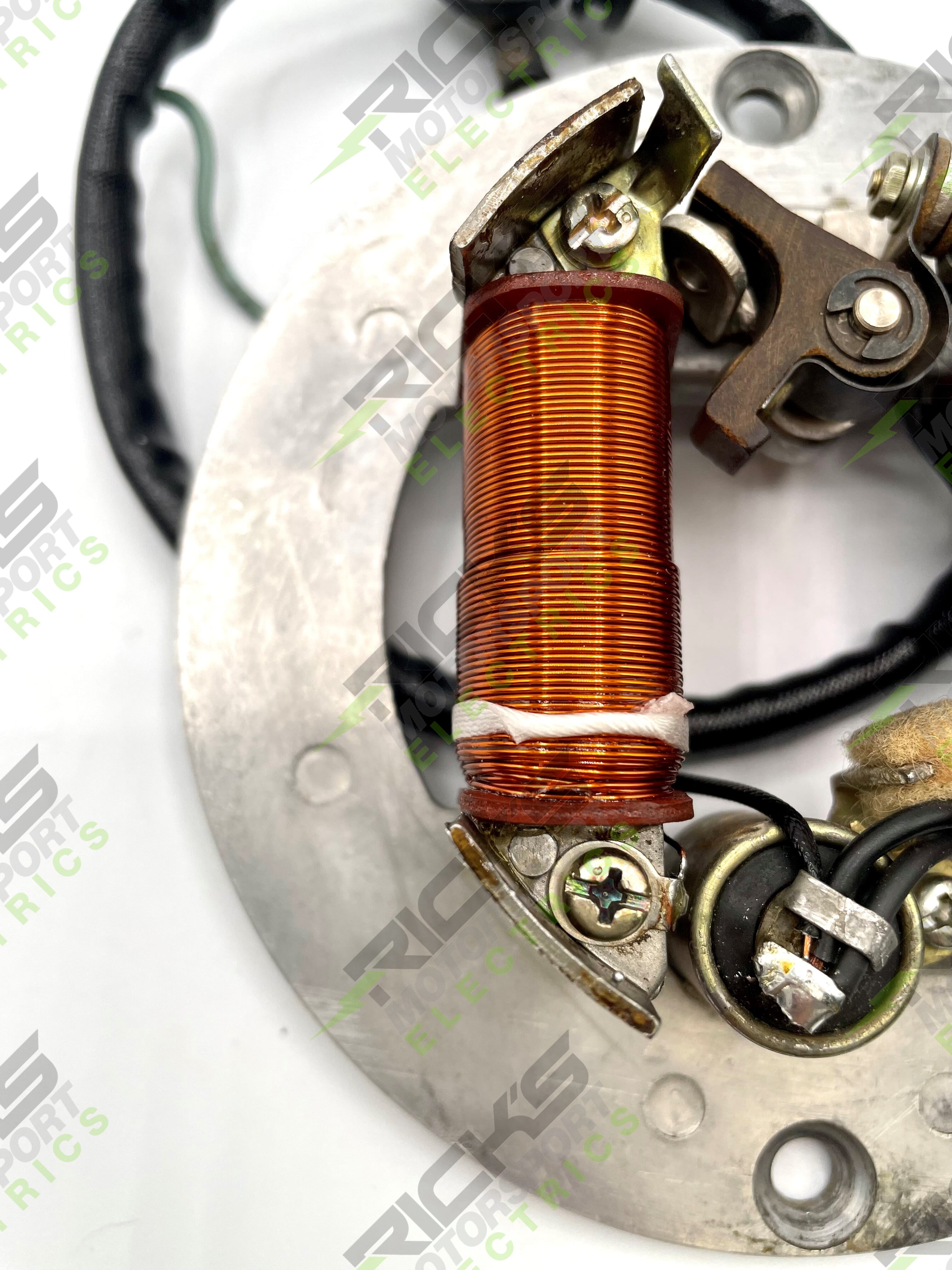 Rebuilt Yamaha Source Coil: A core is required in advance;this includes the stator plate, grommet, all coils mounted on the plate (where applicable) as well as wiring and connectors/terminals coming off the coils or plate assembly for all components even if you only require an individual coil rebuild. *The rebuild is for the Source Coil only. Please send your piece into us with a copy of the completed part rebuild form located on our website. Once the part gets here, we will test it then contact you for payment before beginning any work. Current turnaround time for a rebuild is 2-3 weeks from receiving payment. No personal checks accepted. Due to increased pricing and material shortages, all prices are subject to change. If there is any unforeseen work that we need to do to "clean up" the core; i.e: additional dismantling due to corrosion,frozen bolts,etc. there will be an additional labor charge. The labor charge will be $65/hour with a 1 hour minimum. We have done our best to give an accurate estimate for the initial rebuild charge, but there may be additional fees that can only be assessed once the rebuild is complete.