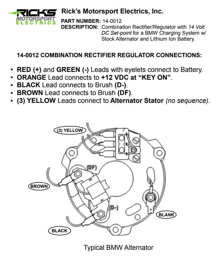***Rick's Motorsport Electrics One Year Product Warranty is for the Rec-Reg only. Rick's warranty does not cover batteries of any type.