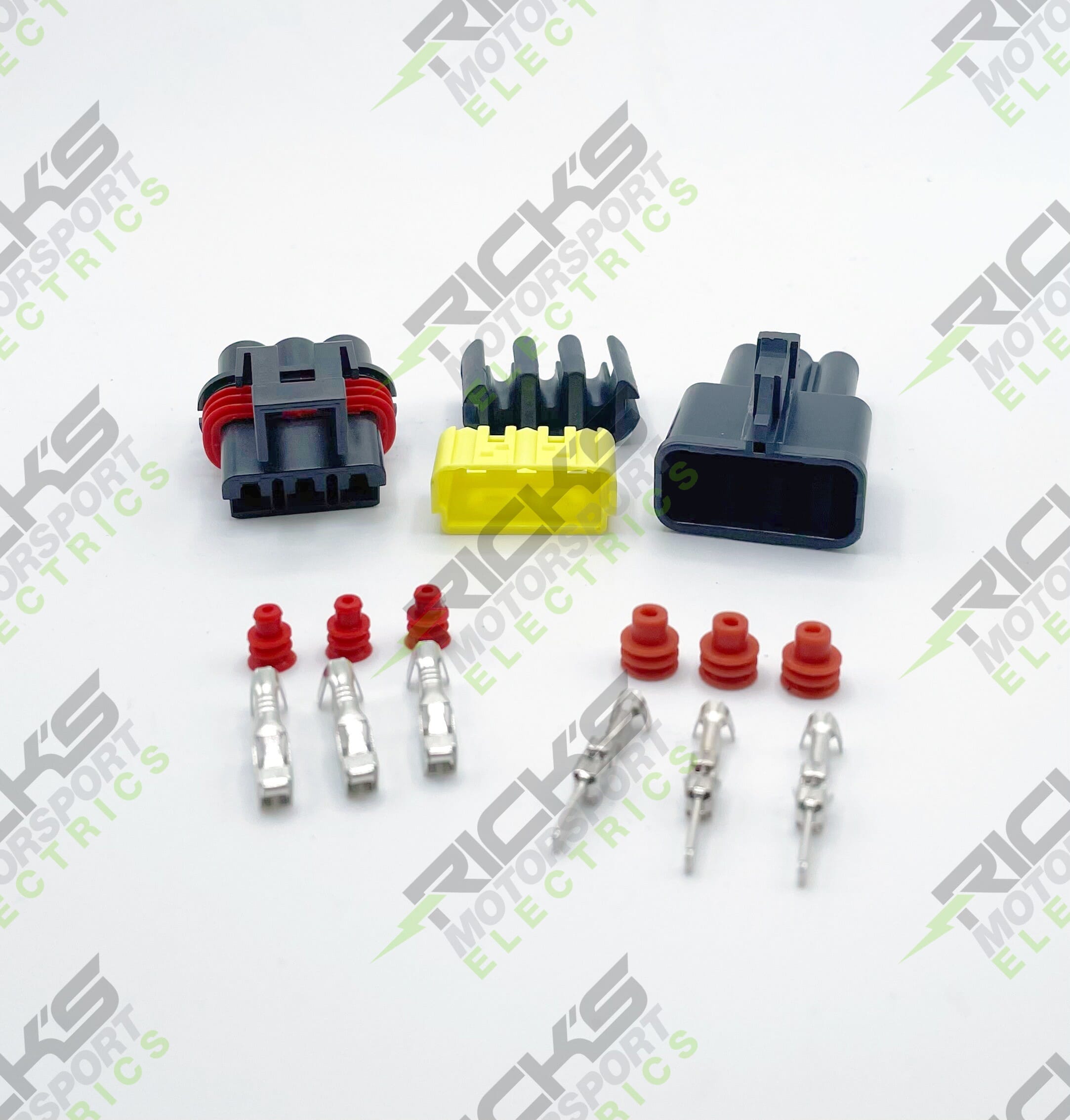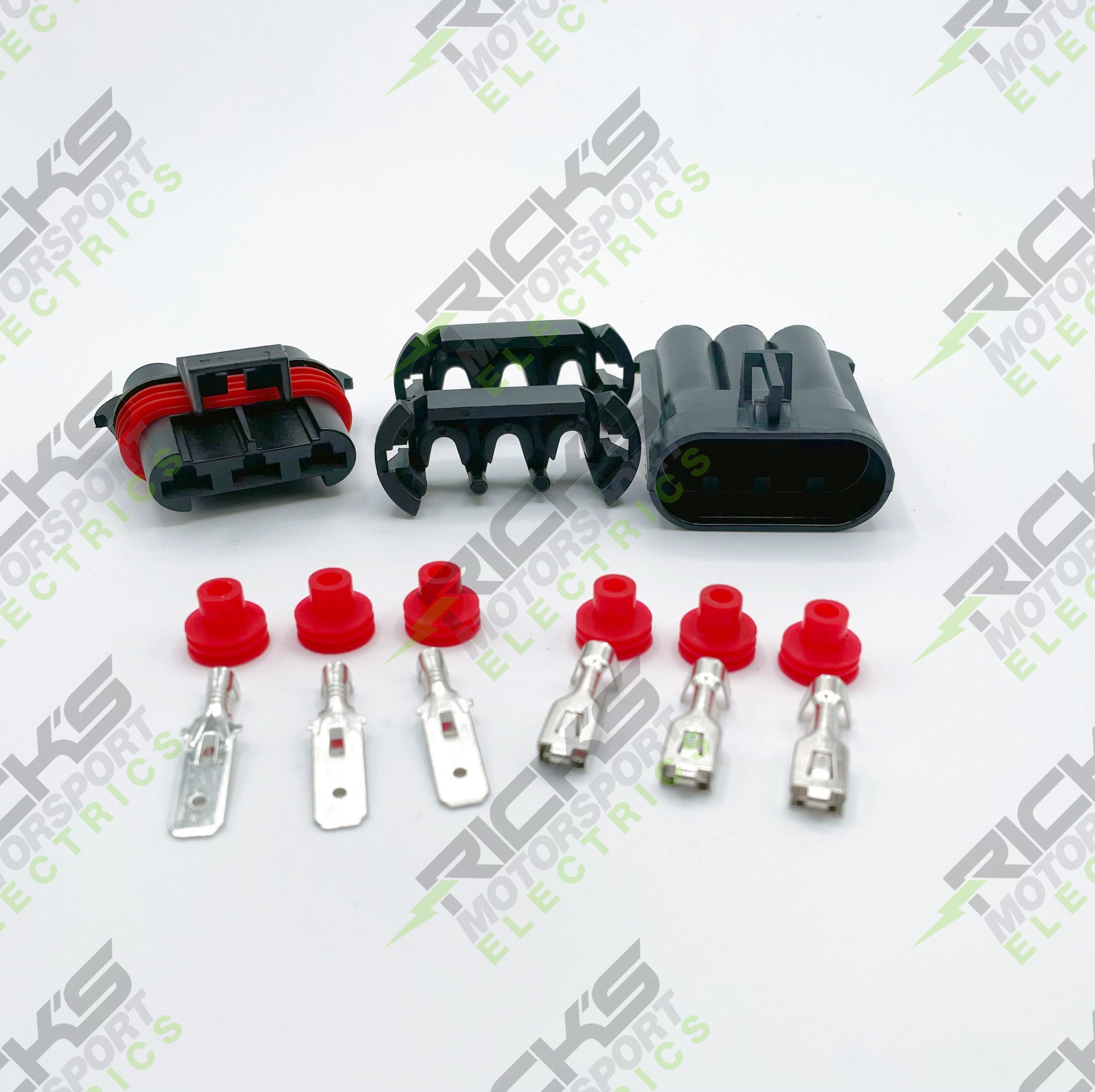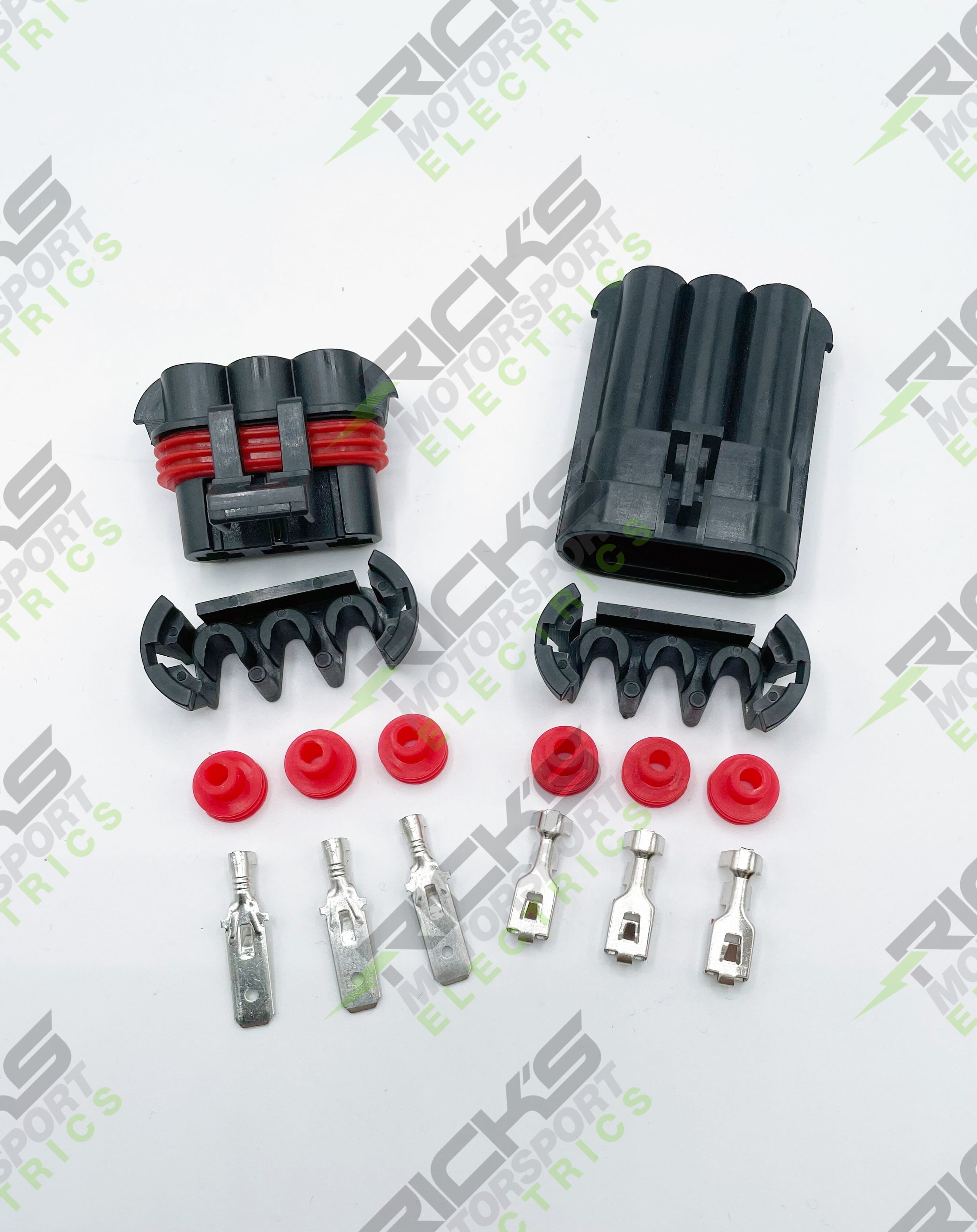 Universal Connector Kit; This is a universal style connector kit made up of heavy duty Delphi water proof connectors & terminals, used on Indian, Polaris and Victory Powersports applications. This includes 2 place, 3 place, and 4 place male & female crimp style connectors. Works with 12-16 gauge wire. *This is the connector kit ONLY, crimpers are sold separately, part# 11-001.
