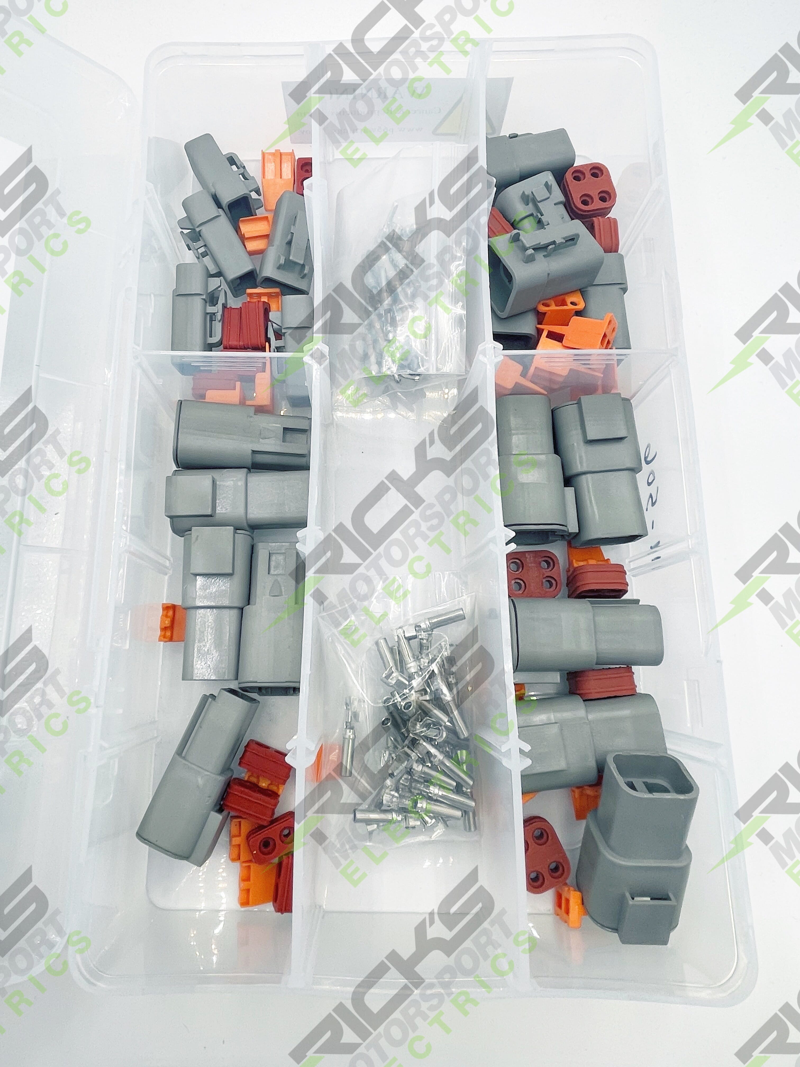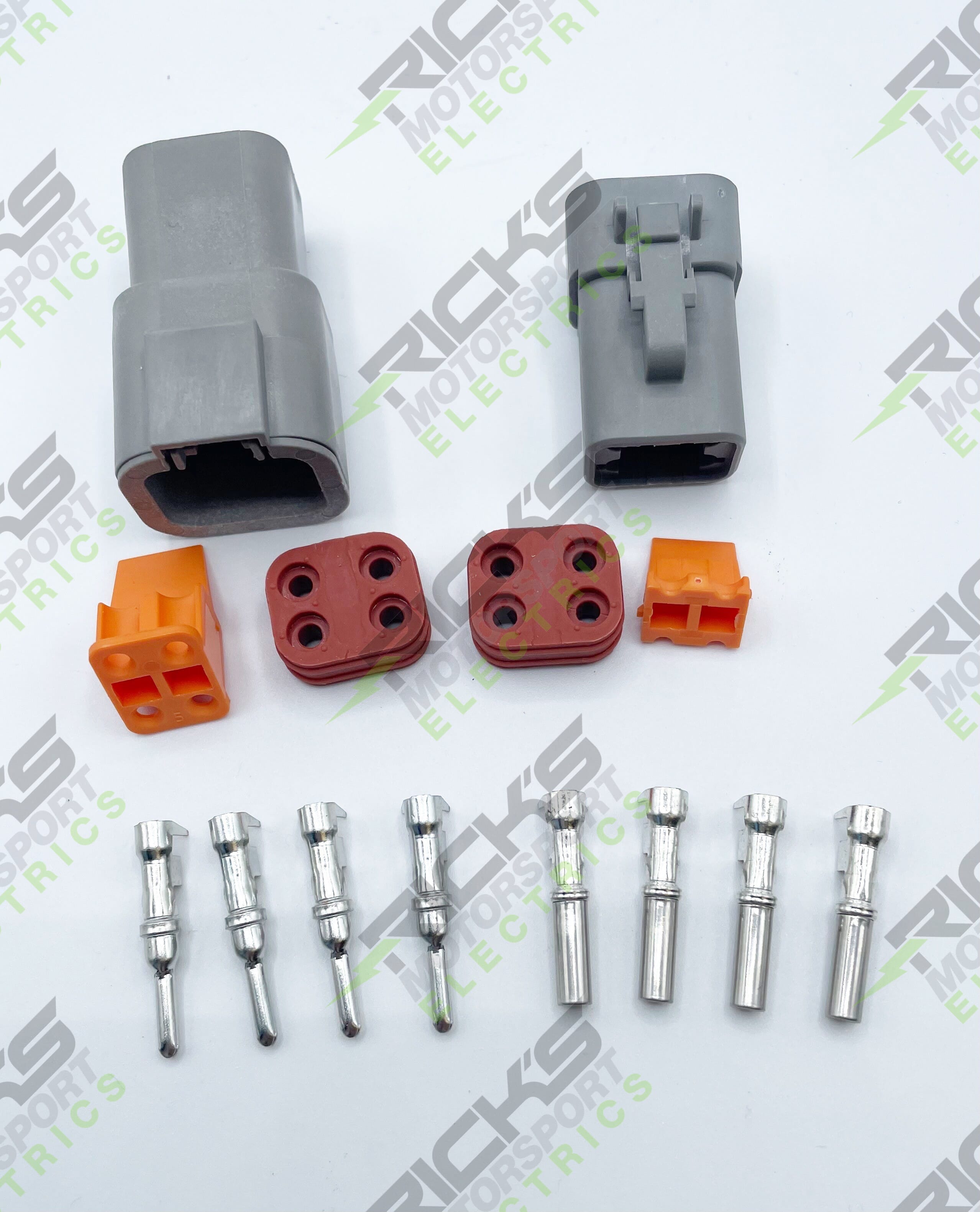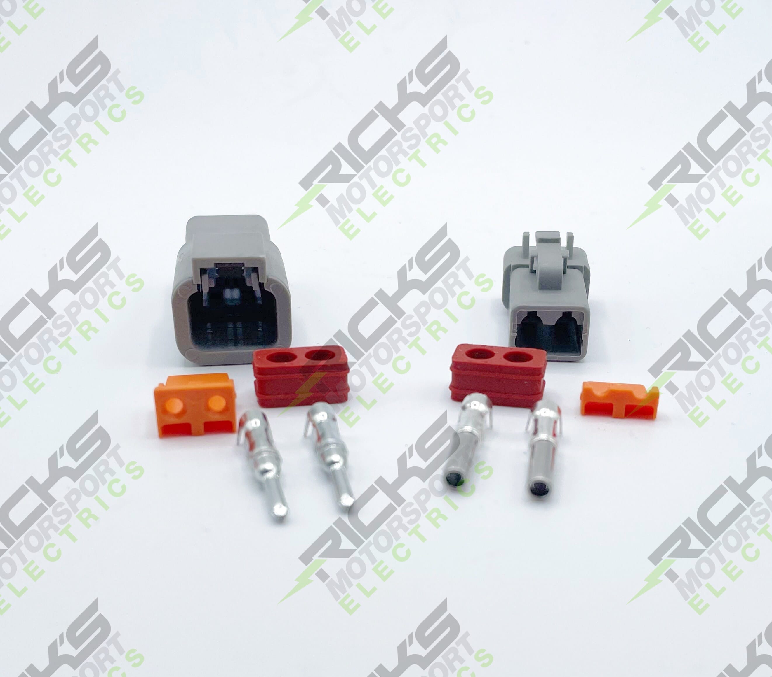 Universal Connector Kit; This is a universal style connector kit made up of ATP Series Deutsch connectors & terminals. These are heavy duty waterproof connectors used on Harley, Cam Am & BRP Powersport Applications. This includes 2 place and 4 place male & female crimp style connectors. Works with 14-16 gauge wire. *This is the connector kit ONLY, crimpers are sold separately, part# 11-001.