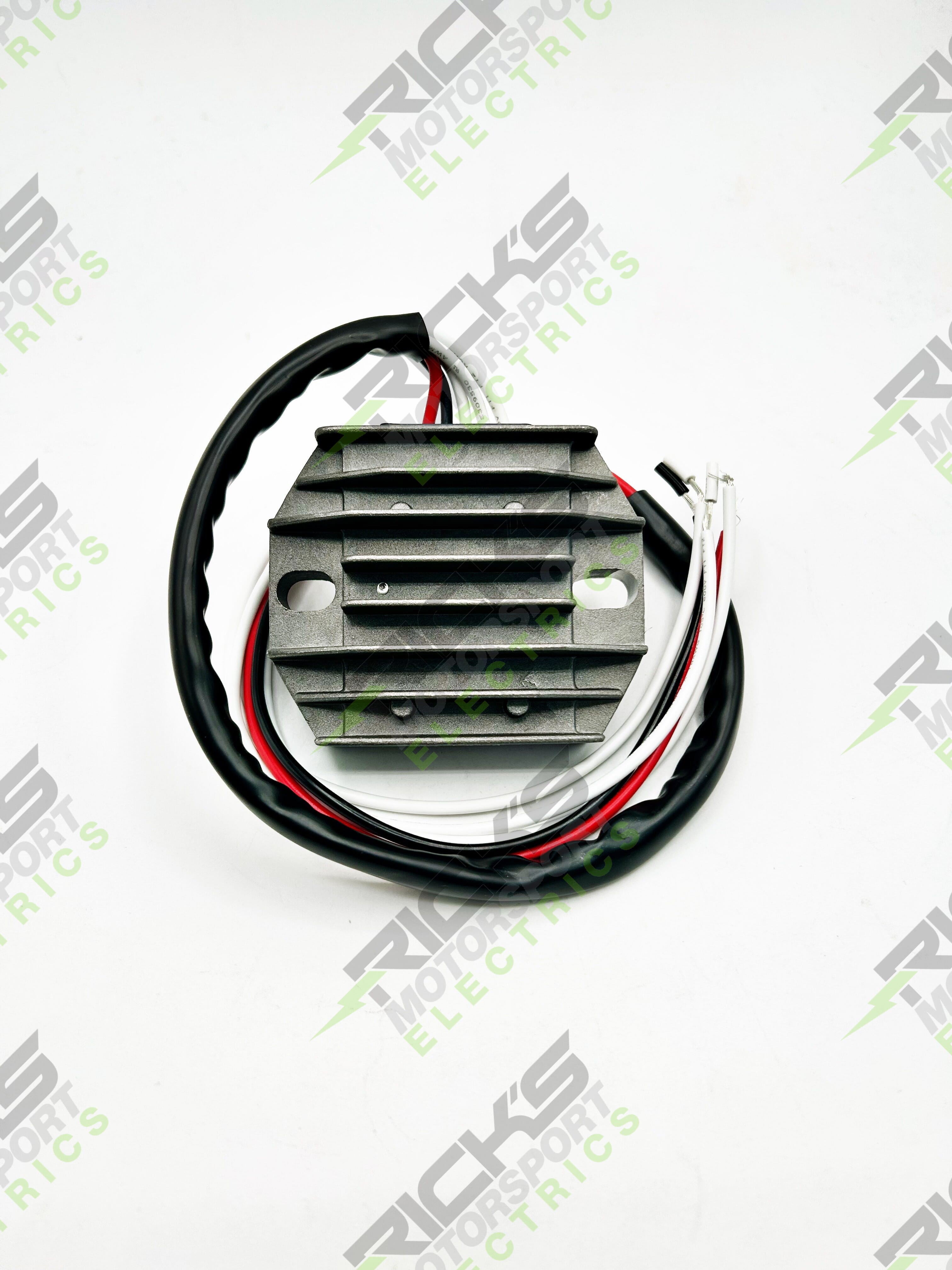 Universal Rectifier-Regulator Lithium Compatible; This is a universal 3 phase, 5 wire, light duty rec/reg that is rated at 20 amps & made with the correct voltage set point for lithium batteries. It will come with 24" leads. *This rec-reg is not for use with standard lead acid batteries. The voltage set point is 14V +/- .2. Please contact the manufacturer of your Lithium Ion Battery to ensure our product has the correct set point for their product. **The Product Warranty is for the rec-reg ONLY. Rick's Motorsport Electrics warranty does NOT cover any batteries.