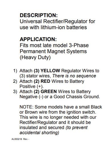 Rick's Motorsport Electrics manufactures this brand new Aftermarket Universal Style Rectifier-Regulator for use with Permanent Magnet Systems that are using Lithium Ion Batteries. Rick's part #14-515 is designed with a lower voltage set point to work with lithium ion batteries. Rick's 14-515 will come with 30" wire leads and is perfect for Custom Builds on early Model Japanese Street Bikes that are utilizing Lithium Ion technology for the battery. Customers will need to hard-wire or re-use their OE connectors when installing this rec-reg; detailed instructions will be included for installation. *The dimensions are 3 1/2" x 3 1/2" x 1". **For the Yamaha Venture & VF1100 Magna - our rec/reg is not the same size/shape as OE & it will not mount in the same spot. ***This rec-reg is not for use with standard lead acid batteries. The voltage set point is 14V +/- .2. Please contact the manufacturer of your Lithium Ion Battery to ensure our product has the correct set point for their product. ****The Product Warranty is for the rec-reg ONLY. Rick's Motorsport Electrics warranty does NOT cover any batteries.