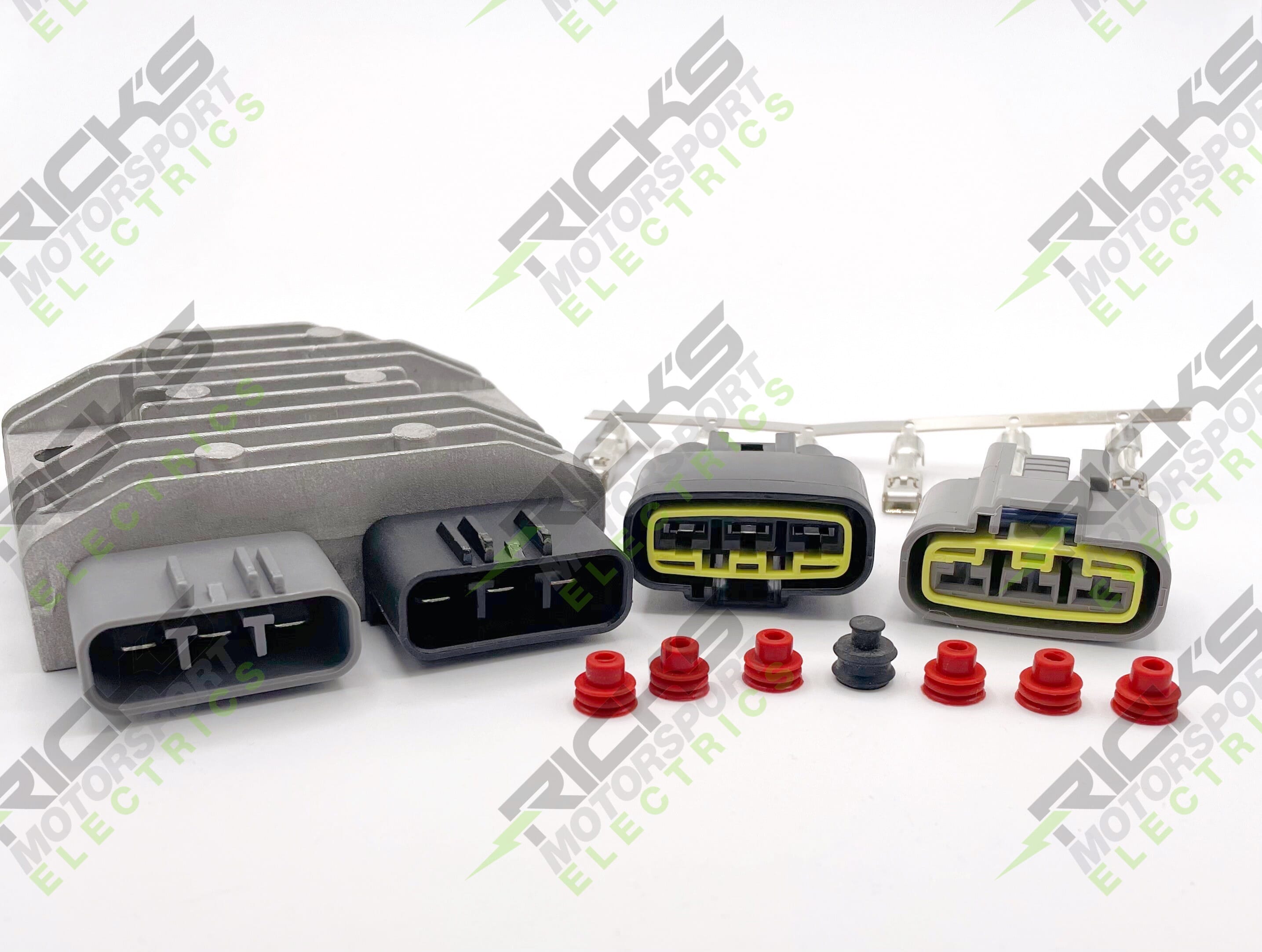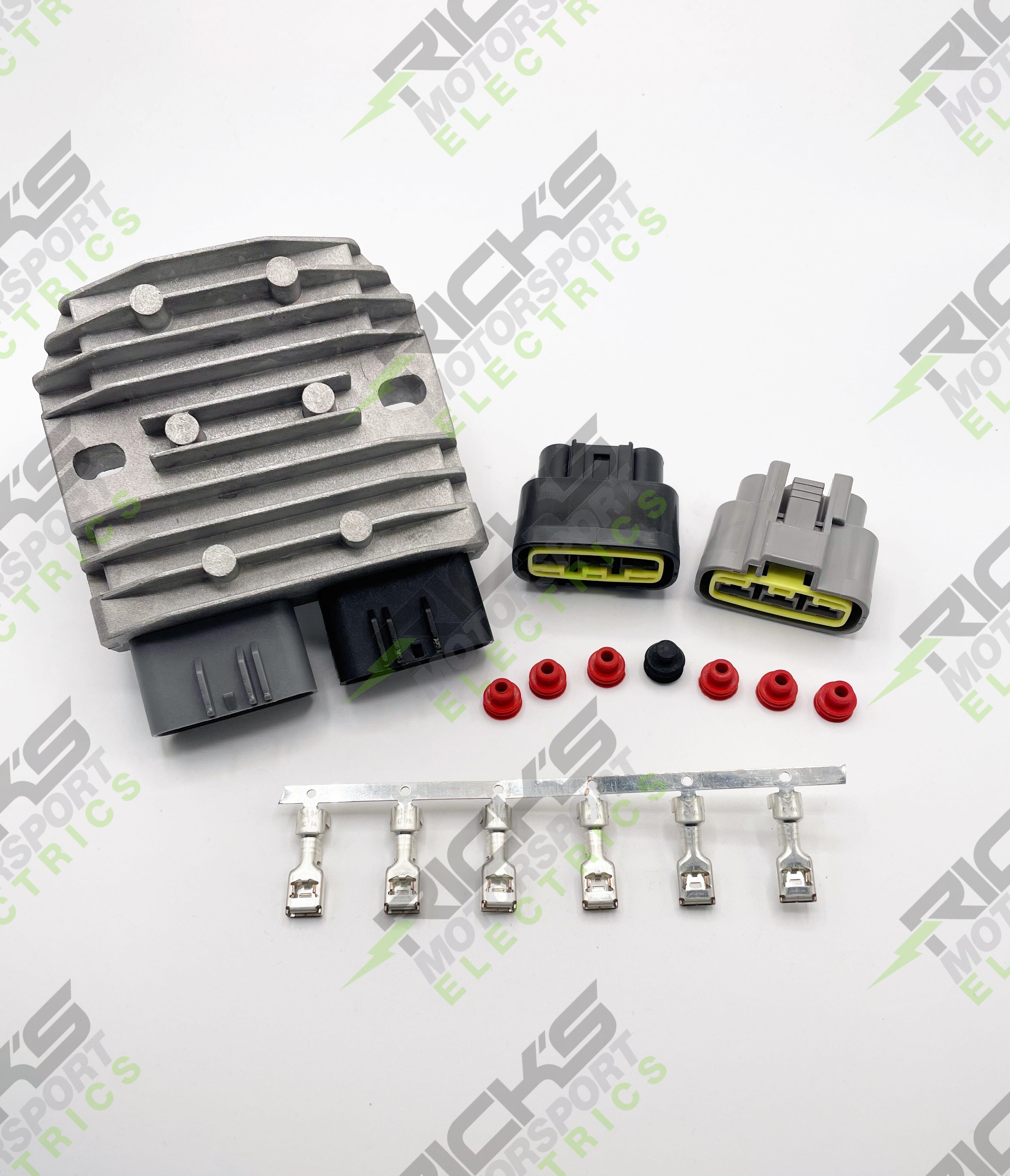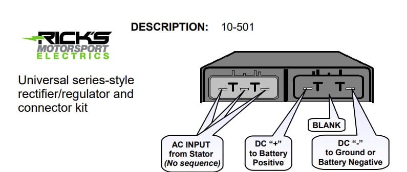 Universal Style Series Rectifier-Regulator, Rick's aftermarket part is a series style 35 amp rectifier regulator made for 3 phase systems. Part will come with the opposite end connectors and terminals to make a "universal" rec/reg kit for customers wanting and/or needing a series rec/reg.